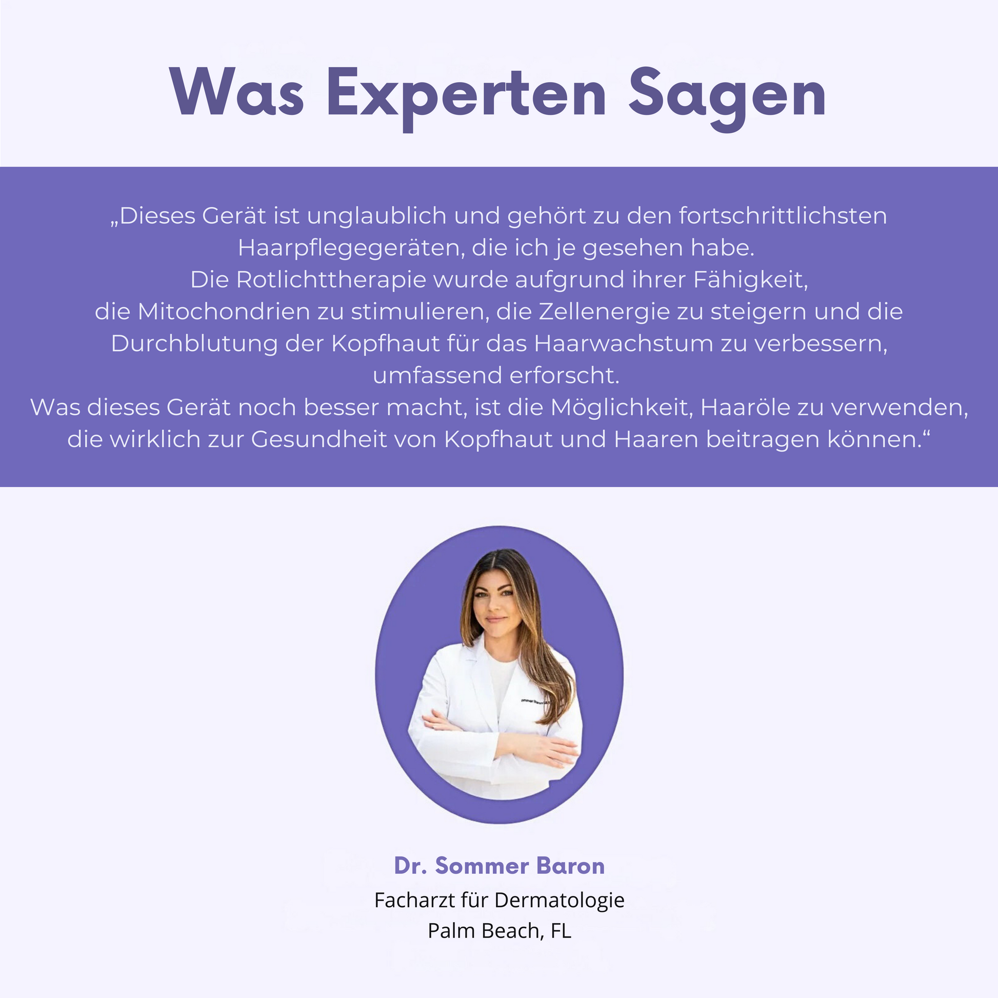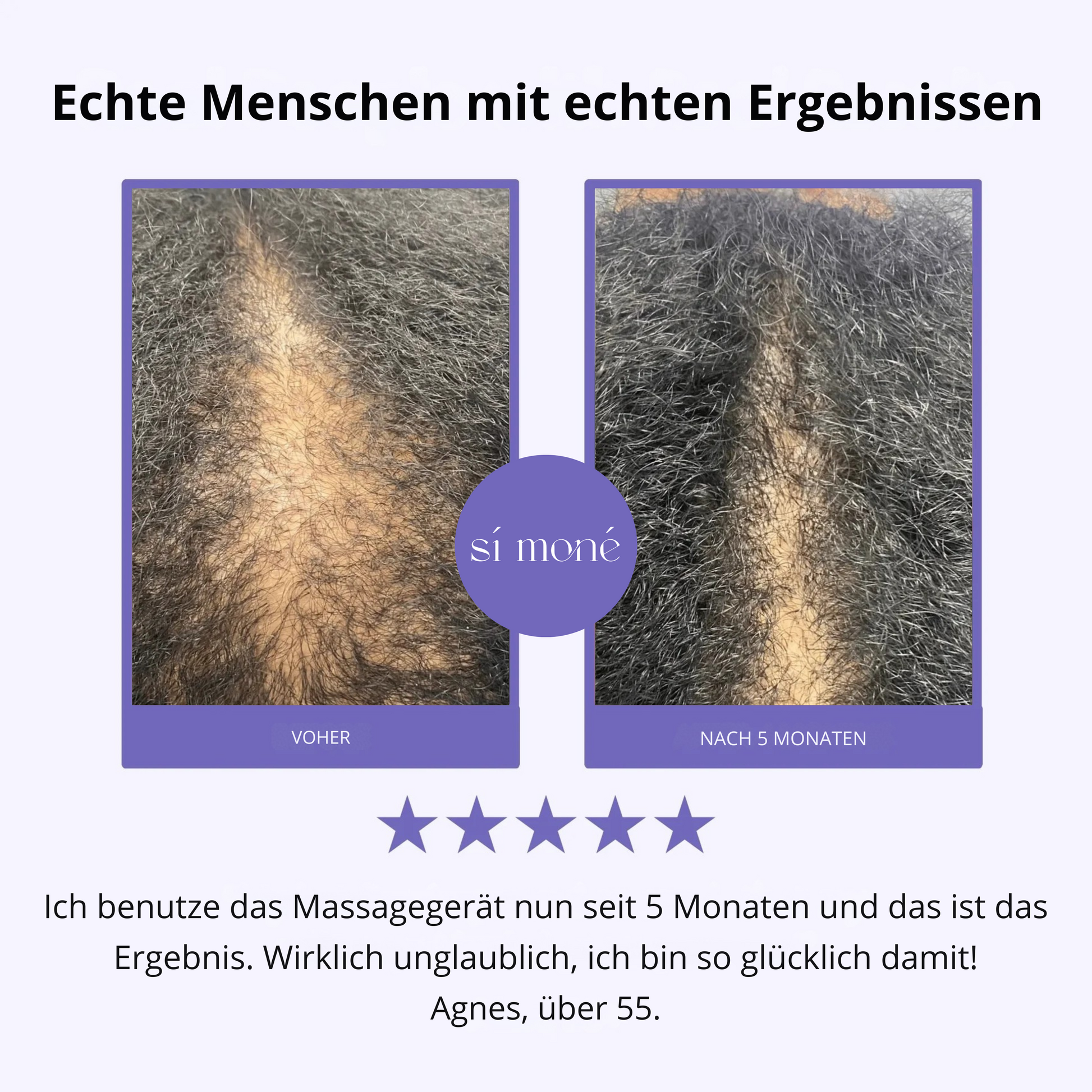 Dank unseres fortschrittlichen Ölverteilungssystems und der dreidimensionalen Massageklauen erleben Anwender sofortige Entspannung und sichtbar gesünderes Haar schon nach der ersten Anwendung. Bei regelmäßiger Anwendung zeigen sich in der Regel innerhalb von 4 bis 6 Wochen deutlichere Verbesserungen. Die Situation jedes Einzelnen ist einzigartig, daher können die individuellen Ergebnisse variieren. Je konsequenter Sie das Gerät anwenden, desto schneller werden Sie Ergebnisse sehen.