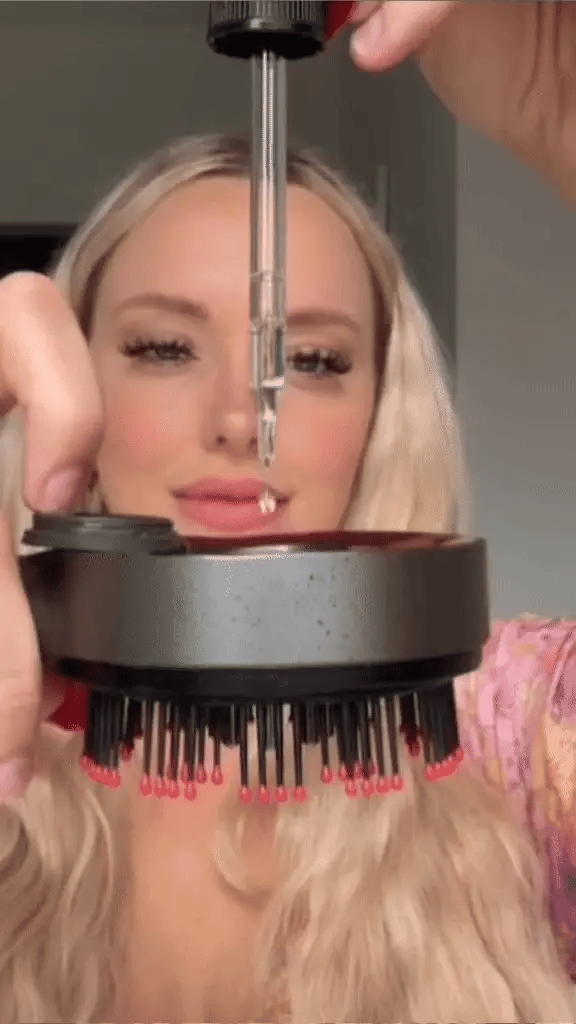 Bevor Sie das Gerät verwenden, können Sie Haaröl auftragen, indem Sie einfach die hintere Kappe entfernen und Ihr Serum hinzufügen (oder Ihr Serum direkt auf die Kopfhaut auftragen).